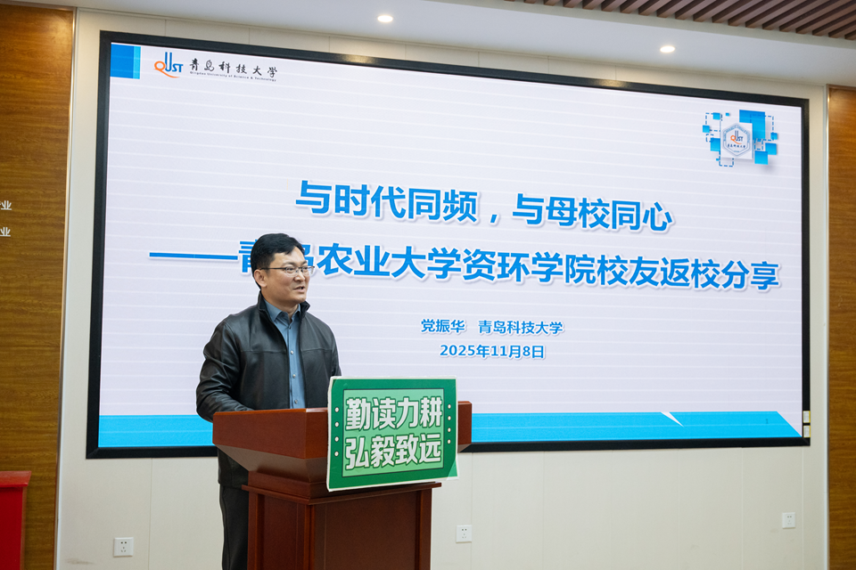 交流分享环节,党振华作了题为《与时代同频,与母校同心》的分享。他作为学院首届环境工程专业的学生,回顾了专业初创时“白手起家”的奋斗历程与环保产业20年来的发展浪潮。他深情感恩学院各位恩师在学生工作与科研道路上的指引,并分享了自己从高校管理岗回归科研领域的职业转型故事。他寄语同学们,一是坚守专业精神,锻造核心竞争力;二是秉持长期主义,耐得住成长的寂寞;三是保持独立思考,锤炼批判性思维,为同学们专业发展与职业规划提供了清晰方向。