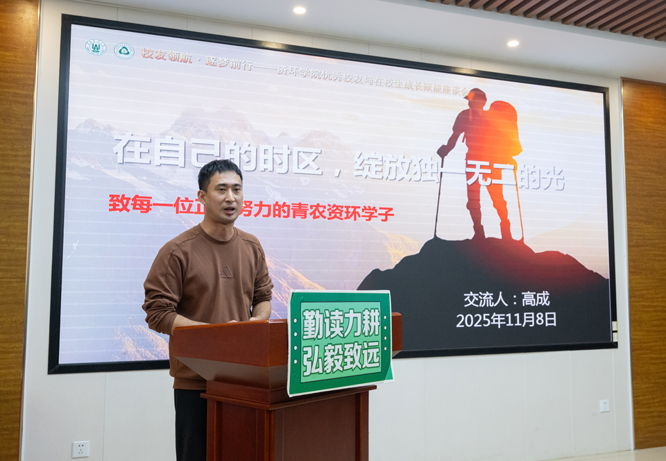 高成以《在自己的时区,绽放独一无二的光》为主题,分享了自己在学院优良学风激励下,从成绩不理想到最终逆袭考取西北农林科技大学硕士、四川大学博士的励志历程。他围绕升学关键环节展开分享,并鼓励同学们要凭借持续努力实现自我突破。