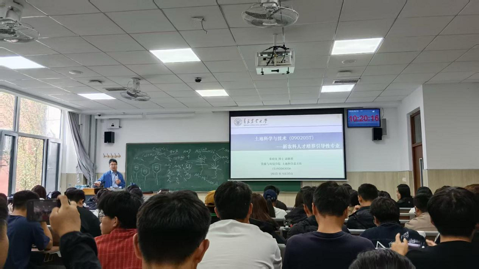 土地科学与技术系主任张晓光以“土地科学与技术的初心与未来”为核心,从专业发展背景切入,向新生们介绍了土地科学与技术作为新农科引导性专业,在保障国家粮食安全、助力乡村振兴等国家战略中的重要意义。他介绍了专业培养目标和未来可从事的工作方向,并分享了自身科研经历,鼓励新生们既要打下扎实的专业基础,也要积极参与实践创新,培养对土地资源的敬畏之心与责任担当,以踏实学风开启大学征程。