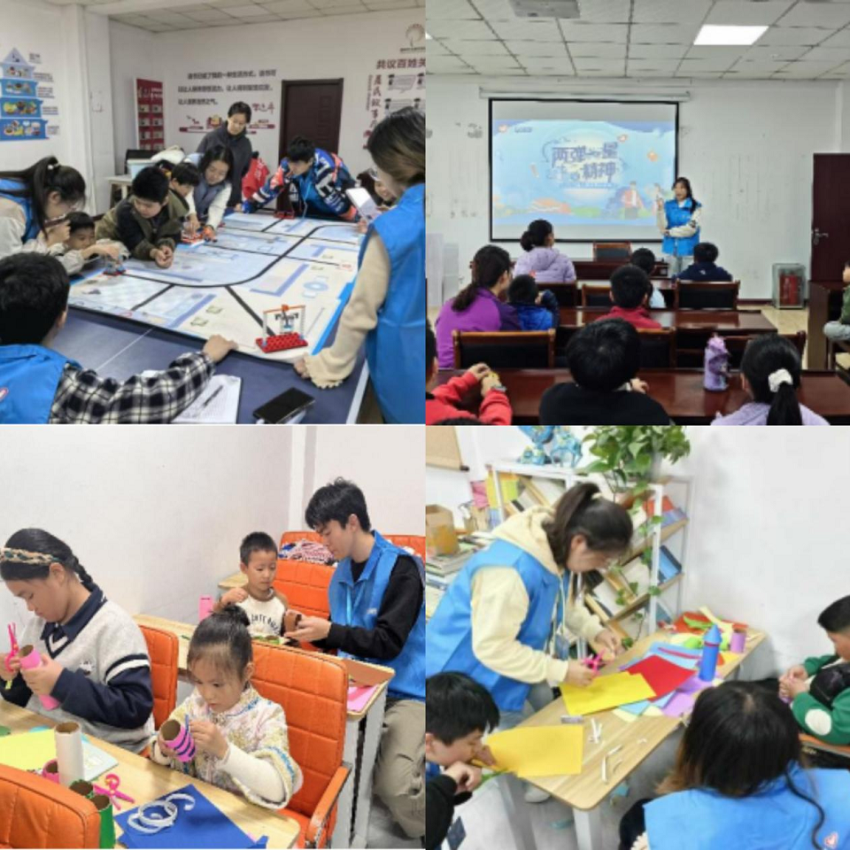 学院“砺剑筑梦”宣讲团深入社区、学校,开展多场国防教育主题宣讲。围绕“两弹一星”精神,志愿者通过鲜活故事、科学解读与互动体验,向居民和中小学生普及核能知识,弘扬科学家精神。11月3日,在春阳路社区,志愿者系统讲解“两弹一星”研制历程,并结合“华龙一号”“人造太阳”等前沿科技,解答居民关心的能源安全与核辐射问题。11月22日,学院联合惜福镇街道团工委、福苑社区团支部,以“北山万年级工程”为引,阐释“两弹一星”精神的时代价值,并带领青少年动手制作火箭模型,在实践中激发爱国情怀与科学兴趣。