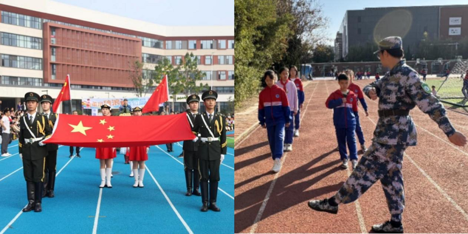 学院国旗护卫队队员发挥自身特长,走进中小学校园开展国旗文化推广活动。11月1日,队员受邀担任城阳区凤凰山学校运动会开幕式升旗手,以整齐的队列、规范的动作完成升旗仪式,为全场师生上了一堂生动的爱国主义教育课。11月21日,队员们走进城阳第二实验小学,为学校国旗班开展队列训练指导。通过动作示范、分解教学、分组练习等方式,耐心纠正学生姿势,并分享国旗护卫队的使命故事,让青少年在体验中深化对国旗的尊重与热爱。
