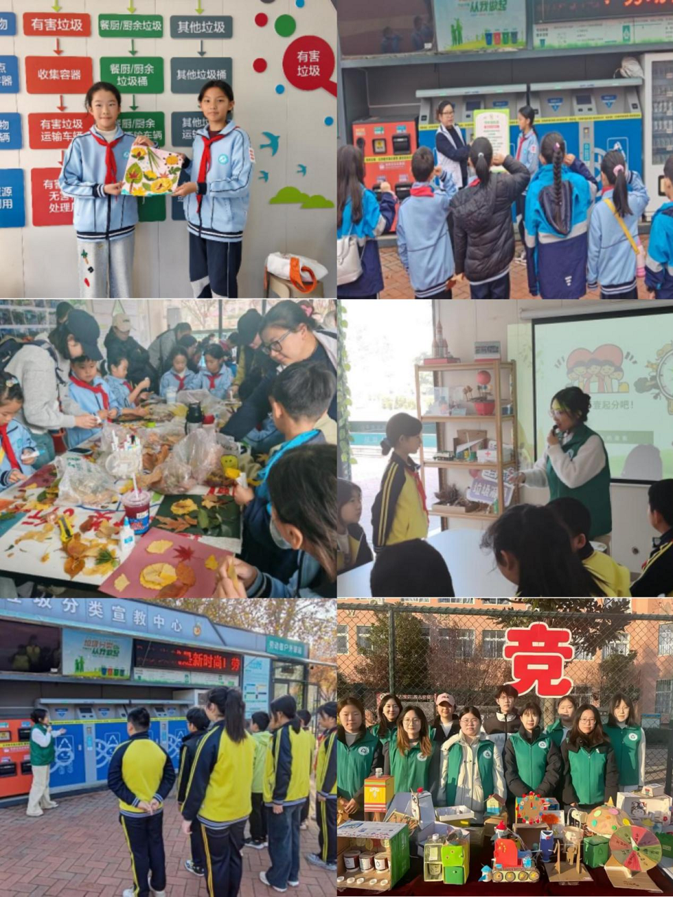 学院志愿者团队紧扣专业特色,推动垃圾分类、资源循环理念深入人心。11月15日,在盈园广场,志愿者为红岛小学亲子家庭开展环保宣讲,通过实物展示、趣味问答等形式,帮助家庭树立“零废弃”生活意识。11月16日,学院联合红岛小学、城阳实验中学,在奥林匹克雕塑文化园开展“少年绿先锋・厨余堆肥实践”,近百名学生在志愿者指导下亲手操作堆肥流程,感受资源循环的生态价值。11月22日,在城阳区世纪公园堆肥基地,志愿者为桃林小学学生及家长设计智能回收体验、垃圾变迁科普、落叶清扫等环节,实现环保知识从课堂到生活的延伸。
