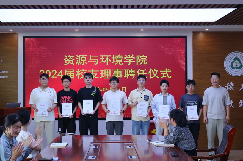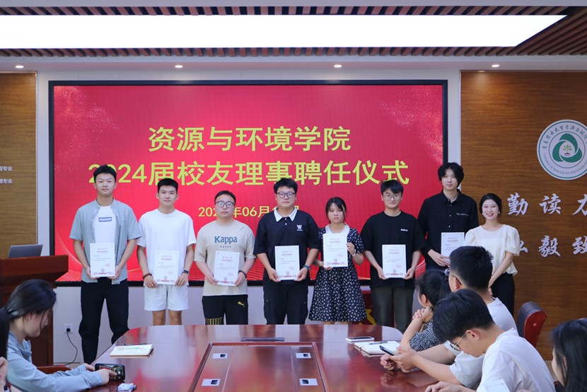 会议宣读了《88858cc永利官网2024届校友理事会成员名单》,并为校友理事颁发聘书和纪念品。2024届校友理事会年级理事长、2024届山东省优秀毕业生宋佳颖代表学院新一届校友理事会成员进行发言。宋佳颖在发言中回顾了大家在学校的学习时光,对母校的精心栽培表示了深深的感谢,并为受聘成为校友理事而深感荣幸。她表示全体理事将加强自身建设,不负重托,用心用情做好校友工作,讲好资环故事,立足岗位建功立业,为学院人才集聚、资源汇聚提供磅礴力量。
