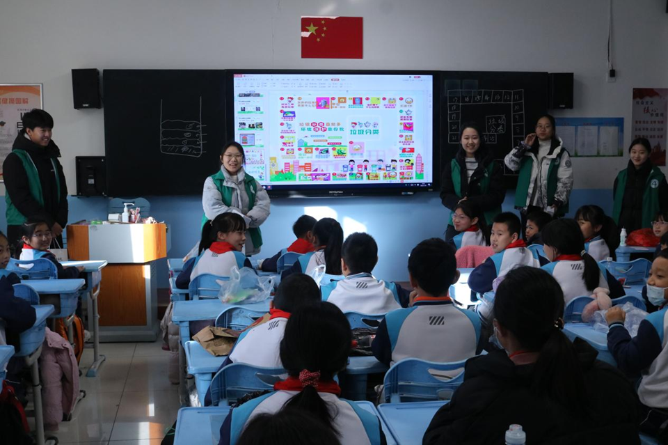 1月14日,实践调研团走进即墨云桥小学,开展了一场别开生面的知识宣讲活动。本次宣讲以垃圾分类与堆肥知识普及为核心,旨在增强小学生的环保意识,引导他们积极践行绿色生活理念。宣讲人员运用通俗易懂的语言,将复杂知识深入浅出地传递给小学生们。期间穿插了小游戏,巧妙融合知识、技能与趣味,同学们热情高涨,纷纷踊跃参与,现场气氛十分活跃,为校园环保教育注入了新的活力。