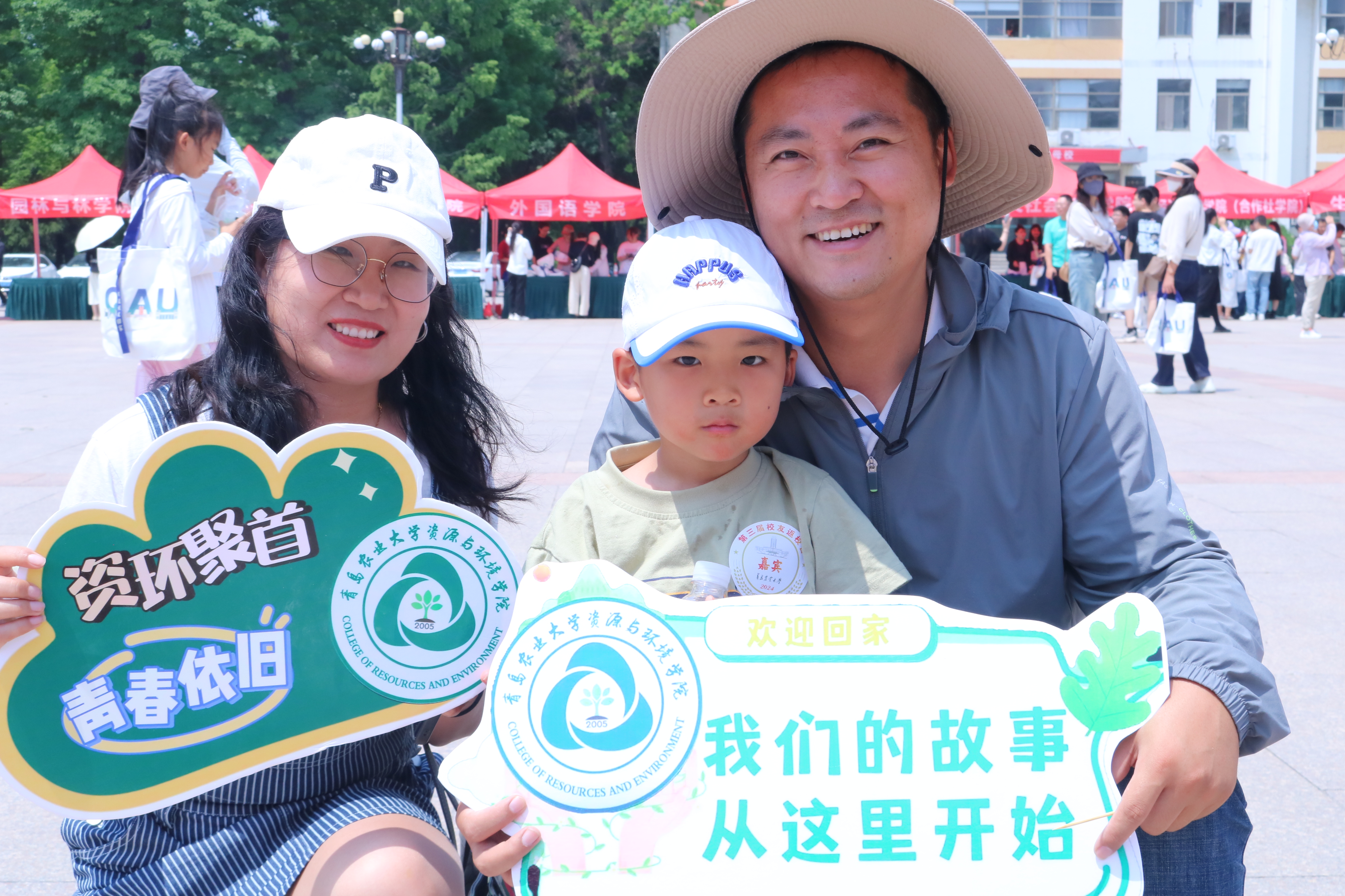 为了让广大校友留下珍贵的返校记忆,学院特别制作了手持牌和易拉宝。“时光不老,我们不散”“资环聚首,青春依旧”等手持标语板、资环学院特色认知展示架,成为了返校现场的热门“道具”。校友们纷纷手持标语板,在签名墙、展示架前合影。师生留念、同窗欢聚的一个个瞬间,一张张笑脸,成为返校日当天最靓丽的风景。